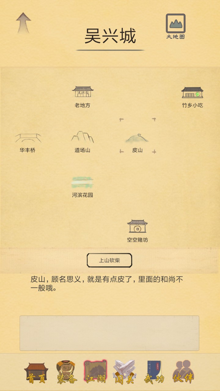 接下来这个地点还是很重要的,就是刷铜币的一个地方,无限刷,皮山上山砍柴一次都可以获得0-100的铜币
