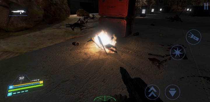 手游目前最强光影,特效全开! 光影效果:方向性的阴影, (手或枪的影子会因为光照方向不同, 还有枪身也有反光效果。 ) 光照反射,火花照射反光效果, 当手电筒照射在物体上会反光。 部份性的实时影子,光照方向影子。 超高清真实的材质,图形表现真实! 抗锯齿效果强,平滑到难以看出锯齿。 真实新布娃娃引擎!物理反应。 黑暗中应付异形,刺激又恐怖… 初期武器:电击枪,没电需要时间回复电量。 手电筒,关着会回复电量。 目前试玩中~ 生存下去吧~ 本游运行频率:60FPS