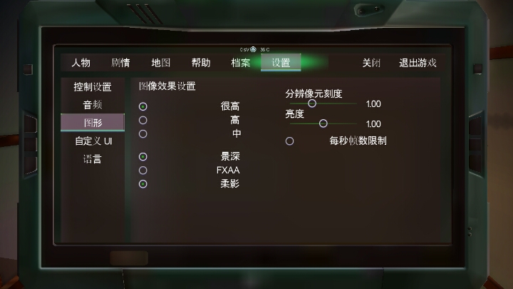 我知道,我是说你初始本来就是低画质了, 而且最低画质的字体比较大, 请你看清楚你的没有"Resolution" 所以画质无法再调更低了, 你只能调图像效果或分辨像元刻度而已。