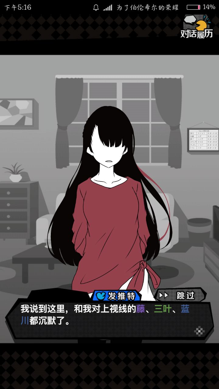 太可爱辽白田!对着茜就一个劲的撒娇哈哈哈哈白田对茜就一痴汉,茜像姐姐一样!还会让白田拿枕头到房间哄睡觉。主要是还真的去拿了。(白田痴汉正解。还有就是对蓝川总会有个“咿”这个也太可爱了吧!蓝白真好磕。而且一点情商都没有,对待小三叶温柔一点都不行嘛|・ω・`)不过白田是真的很珍视这个家啊,这种情况也是在意地板有没有坏掉。有几个结局能看出来白田对这个家的眷念的。“这里可是我的家啊……”那时候看到这个真的是感动死了!白田超可爱!是很认真的把同伴当做家人啊。(但是是个监视别人的死痴汉。)