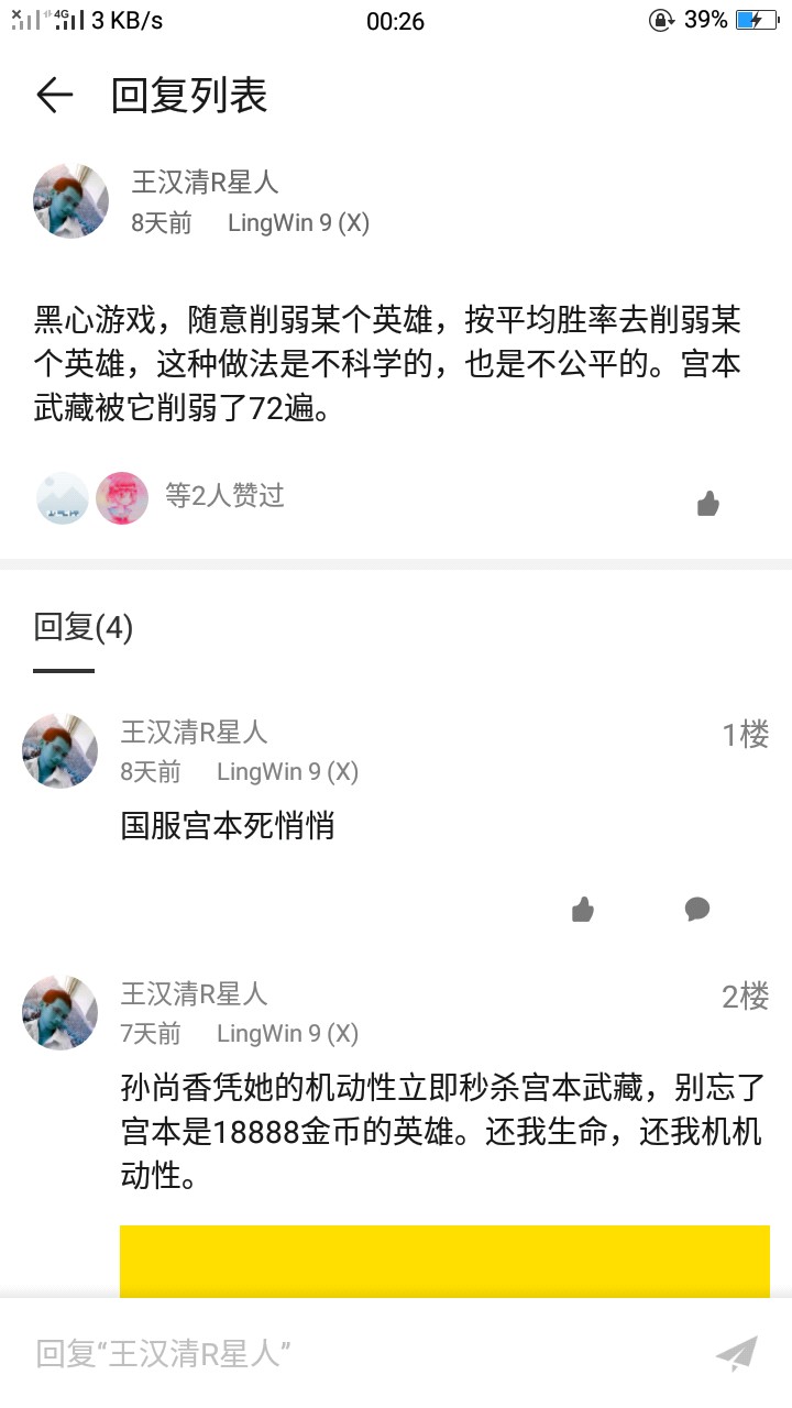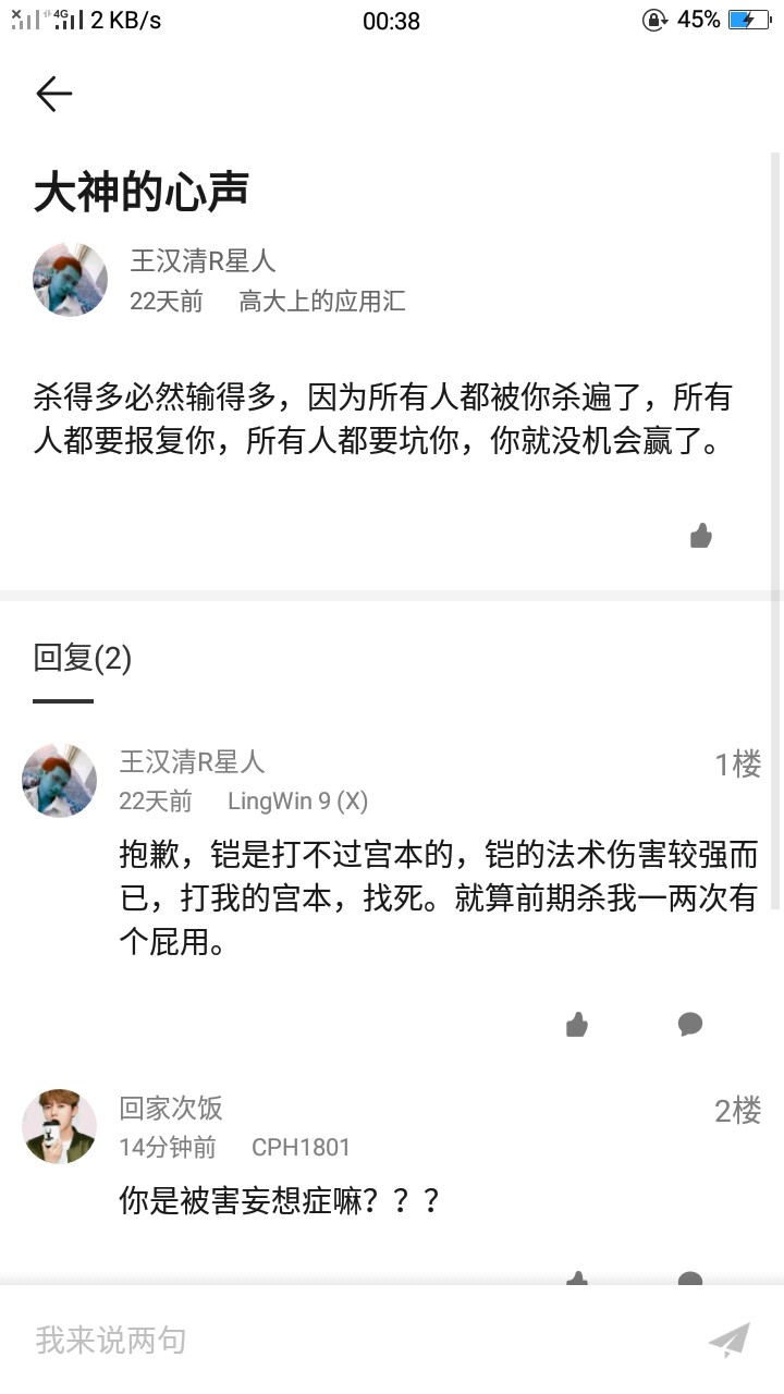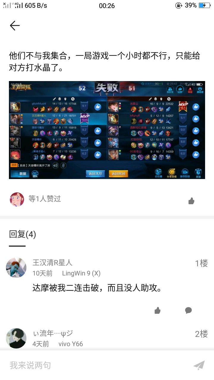 我不是一个坏心眼的人 只是偶尔看到几个不懂装懂的坑逼就受不了 在评论区翻了翻 倒是给我找到一个 他发了不少的评论关于王者荣耀 大致上都是在说王者狗屁游戏 队友太坑之类的~看他发的评论感觉宫本很屌啊~可他也好像只会用宫本 看看他的妲己吧 666 自己玩的不怎么样 还讽刺孙悟空 我也是不懂了 感觉就是小学生的脑回路 他的铭文讲解也是666了 大致上都是废话 你们可以看看 放图不解释: