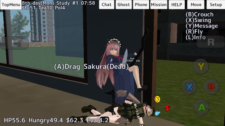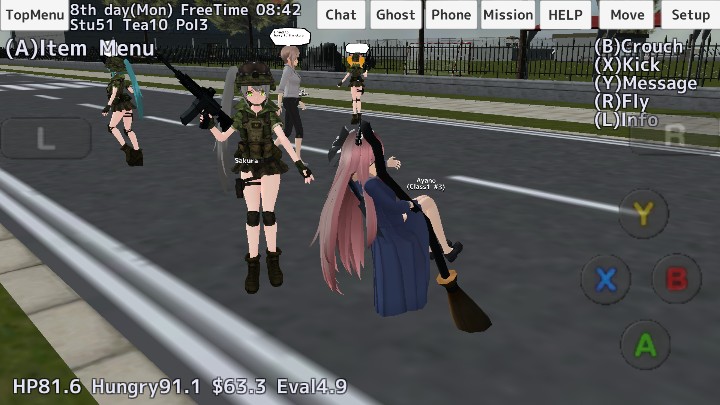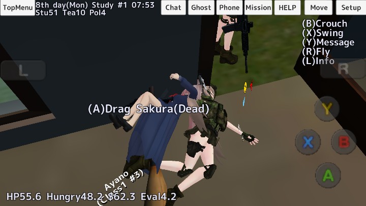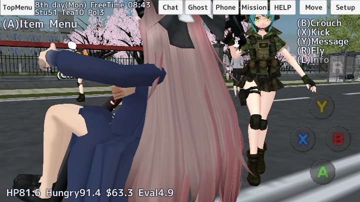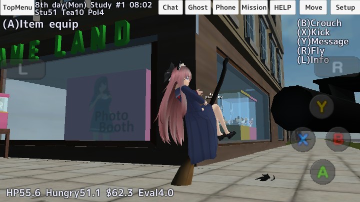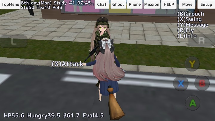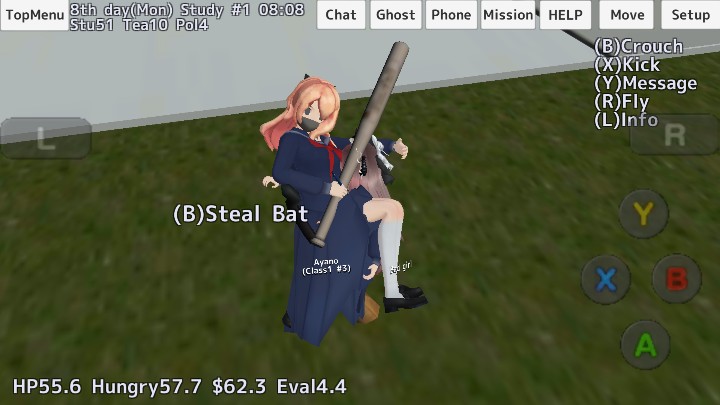 可以进行任何操作(行走,飞行,跳跃,对话,呼叫,抱起,kiss)❗️❗️❗️不要抱bad girl们,抱住她们后会一直显示steal bat,你就放不下来她们了(当然,如果你不介意给可爱的坏女孩们留下不好的印象,先偷她们的棒子在放下她们也是可以的