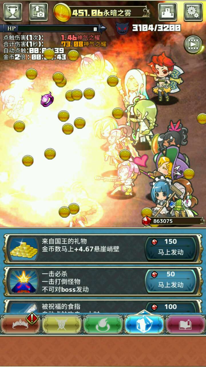 咳咳,全全中国可能也就我玩到这里了真神作,真神作,以后跑分不需要用安兔兔了(滑稽),用这个游戏跑计数单位即可,哈哈哈,后期卡成幻灯片,想要不怎么卡估计得上解了温控的高通835(应该是该游戏最低配置)点杀泰坦类单机rpg游戏,同类型游戏里单位最多的,游戏没有修改版,使用GameGuardian修改器手动修改这游戏还是很不错的,配音阵容很不正常,不像是单机游戏的阵势,估计这是个大后台的游戏计数单位(主角lv2357级):个,十,百,千,万,十万,百万,千万,亿,兆,京,垓,秭、穰、沟、涧、正、载,极,恒河沙,阿僧祗、那由他、不可思议,无量大数,激烈之心,烈火之魂,灾难之拳,绝之知力,苍之气息,冥府之声,转换之则,冲天之炎,炎之意志,熄灭之誓,炼狱之罪,孤军奋斗,闪耀之梦,全知之刃,爆裂之波,世界第一,相思之心,创造之力,神气之耀,想念之歌,凤凰之风,秩序之国,飞翼之兽,超级公主,剑圣降临,天空裂波,魔导乡愁,雷迅,引导,黑暗之炎,龙王之瞳(从亿开始得0000进一个计数单位,可不是个到十,修改器改不了金币,只能改红宝石,到这里大概玩了两天)(之后不是没有了,是玩不动了,就是看着幻灯片数着单位的感觉)