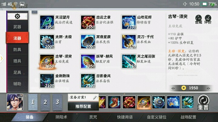 篇接上文:出装直接上图。没错,七件装备。回蓝书第一件装毋庸置疑,没有这件至宝,你将寸步难行(雾)荒哥前期可是耗蓝大手,所以没有回蓝书可是很尴尬的。须兒琴可是荒哥标配啊,金荒失措嘛(ಡωಡ) 等到了后期,回蓝书就不重要了,你可以选择要出第四件或第五件装时把回蓝书卖掉,把后面的装备补全。至于出装顺序,除了回蓝书、法穿鞋、古琴之外,其它装备可以按情况随意调整