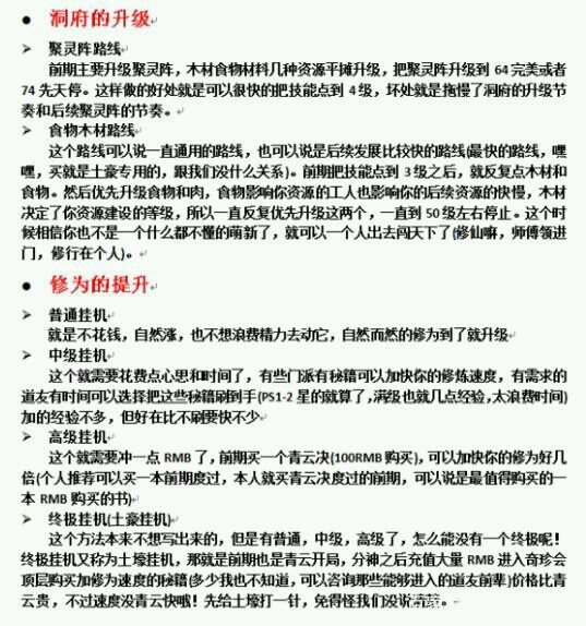 7.门派,前期声望少,不能刷门派,所以安安心心的呆着,有了声望加入有秘诀的门派,在传功房里可以看有或没有,在商店有卖1星门派进入资格的,1000灵石一个,有灵根要求,我认为没有必要,很快可以刷出来,萌新优先进入斗狂门,有加修为的秘诀,是2星的,很可观哦,之后还有很多,青羽,九煞之类的,炼器在九煞学,炼丹在隐神谷8.技能,在门派学习的技能需要技能点,技能点每加一个,需要的声望翻倍,遗忘技能需要100声望在书店买的书学习技能是不用消耗技能点的,所以仙书坊里的书刷新了就可以购买了,无限学,每天0点和12点刷新,这个游戏防御属性最重要,所以前期推荐优先买完心法,有余额在一些攻决,量力而为。