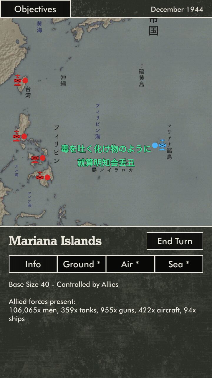 我们就以萌军的教程关来说(结果还不是教程!)首先这是大地图不用说吧,蓝色为萌军红色为本子,圆圈代表的是基地,圆圈旁边的标识不用我说都应该认识吧。