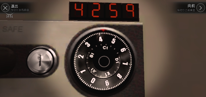我们先去二楼找工具箱,就是有一个贩卖机的地方,旁边有工具箱。里边有两个闪亮亮发光的东西。拿到后,打开背包,上下滑动几下,会发现工具箱的上面有密码。然后再去一楼总务室锁着的箱子那里,输入密码获得两个钥匙。