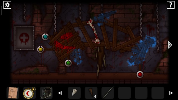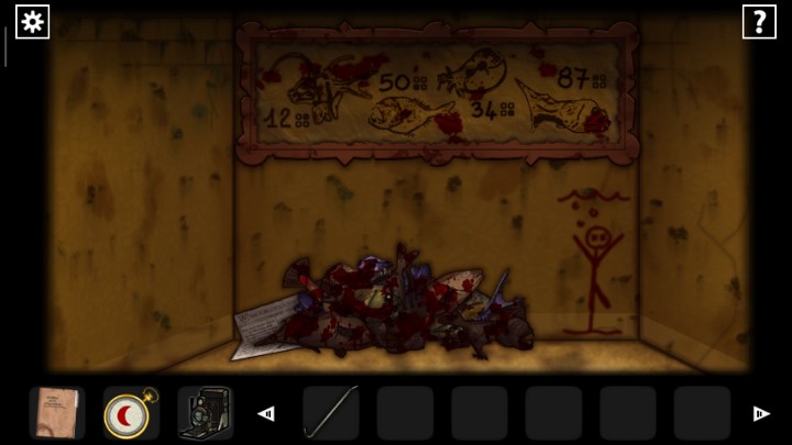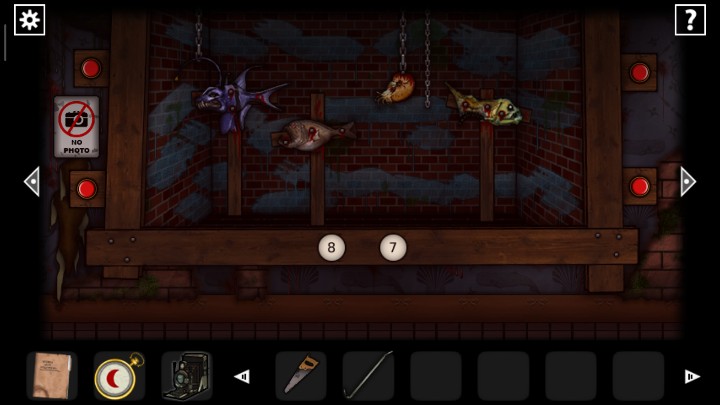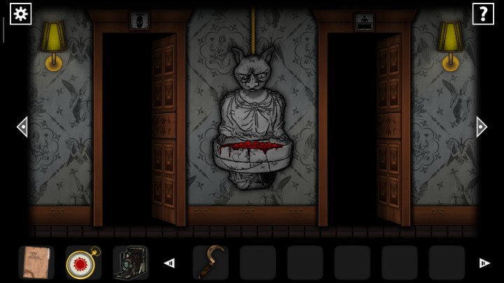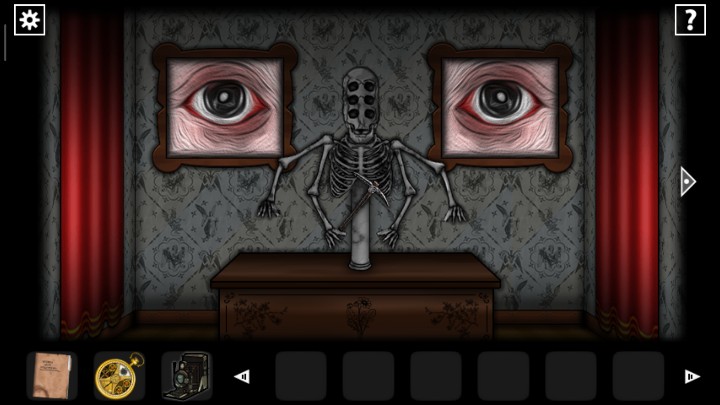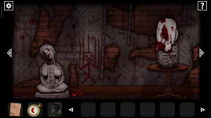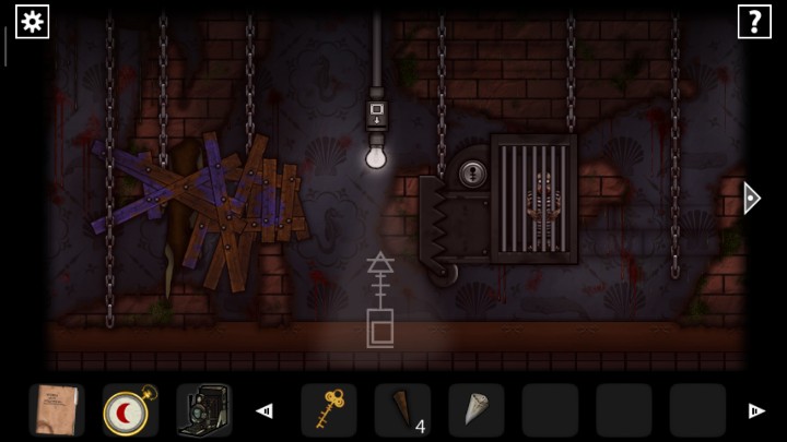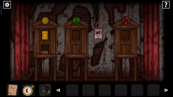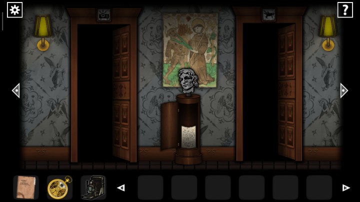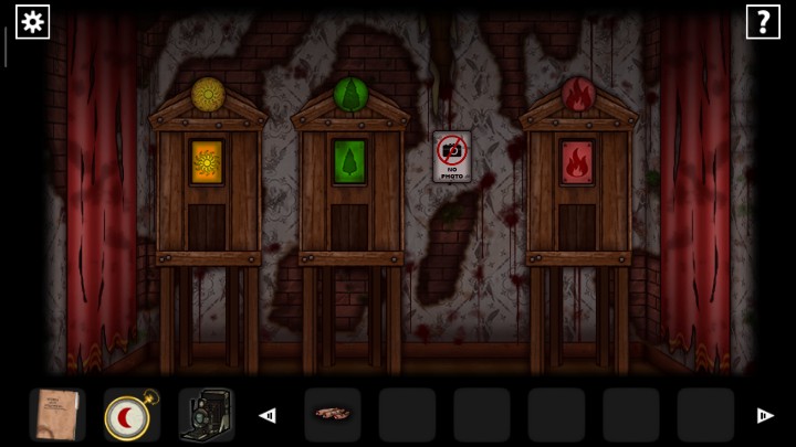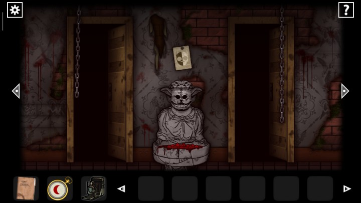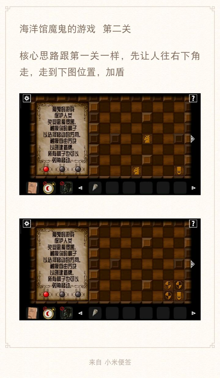 27、用钥匙打开下图2场景的门,根据恶魔头上真假提示,用照相机查看恶魔头上的符号,判断恶魔指的路是否正确,三角就是真实,圆形就是谎言,全部选择真实的路,走出迷宫来到新场景