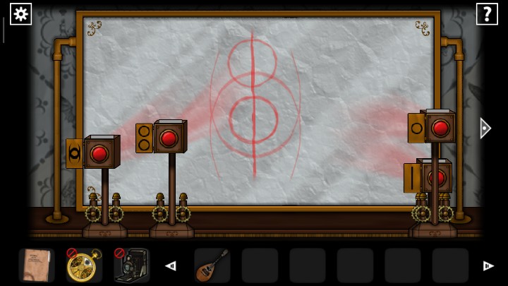 26、回到放映室,根据护身符的图案调整投影图形,参考下图1(完成图没截到),完成后打开柜子得到长笛和钥匙