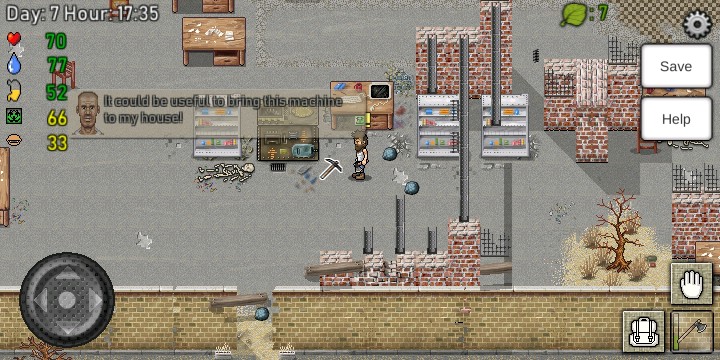 这是一款末日生存类游戏,和大部分生存游戏一样一天就是捡捡垃圾啦,砍砍树啦,收拾房子啦这些。