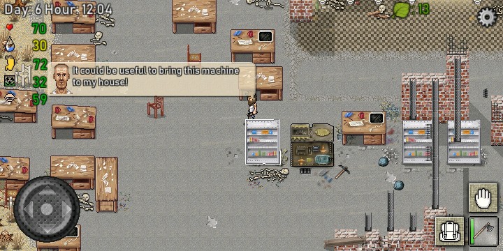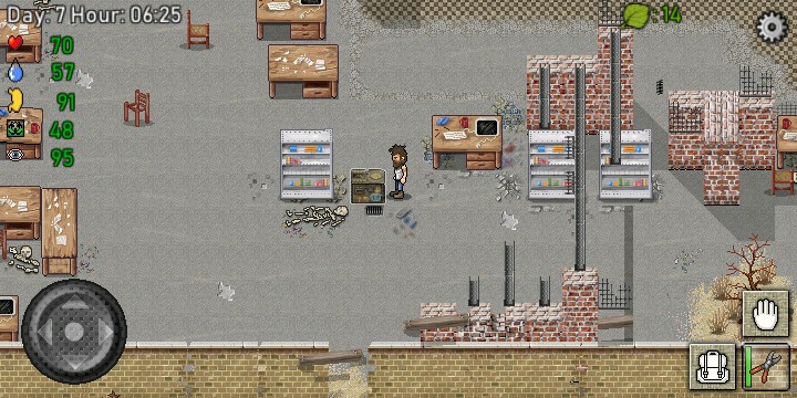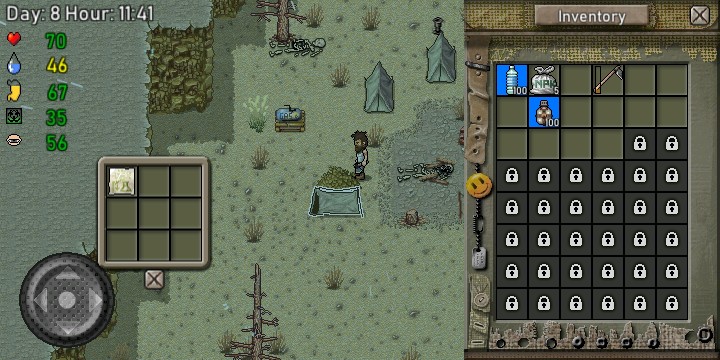 食:食可以分为喝和吃,喝没有什么好说的,但是要注意,水一定要喝净水,不要去喝辐射水,在毒雾(那个绿色的泡泡,翻译上给的解释是毒雾)圈内能找到的降辐射值的草(百里香)最多只有6个。在食物上优先推荐吃罐头,在毒圈内只能找到一个并且还占地方,在压缩饼干吃光的情况下玉米是最好的选择,需要在家中通过锅来加工5玉米+20水回40饱食度,其次是通过种树可能会长出一些野菜或蘑菇,但前期种植数量有限可以忽略不计
