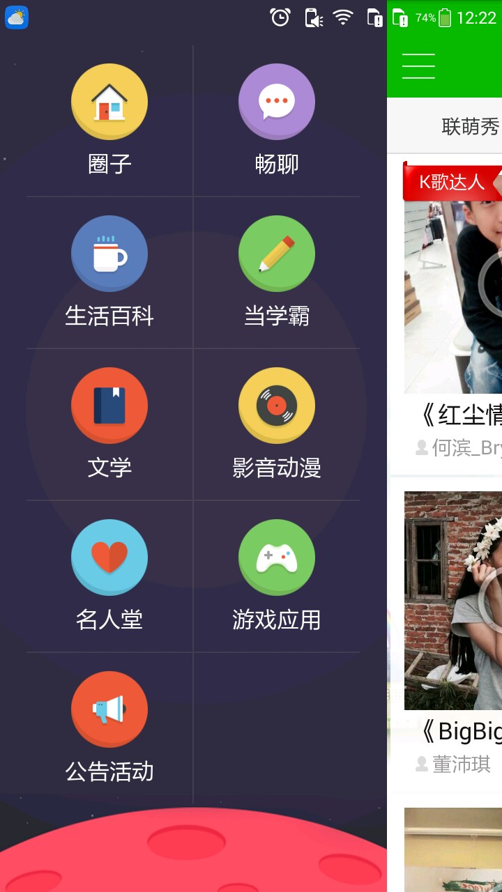 每天获取新知、趣闻,读美文小说,看看电影、动漫还有帅正太与萌妹子的爆照,玩玩游戏,逛逛圈子,和朋友聊聊天,这就是我每天在K谷所做的~