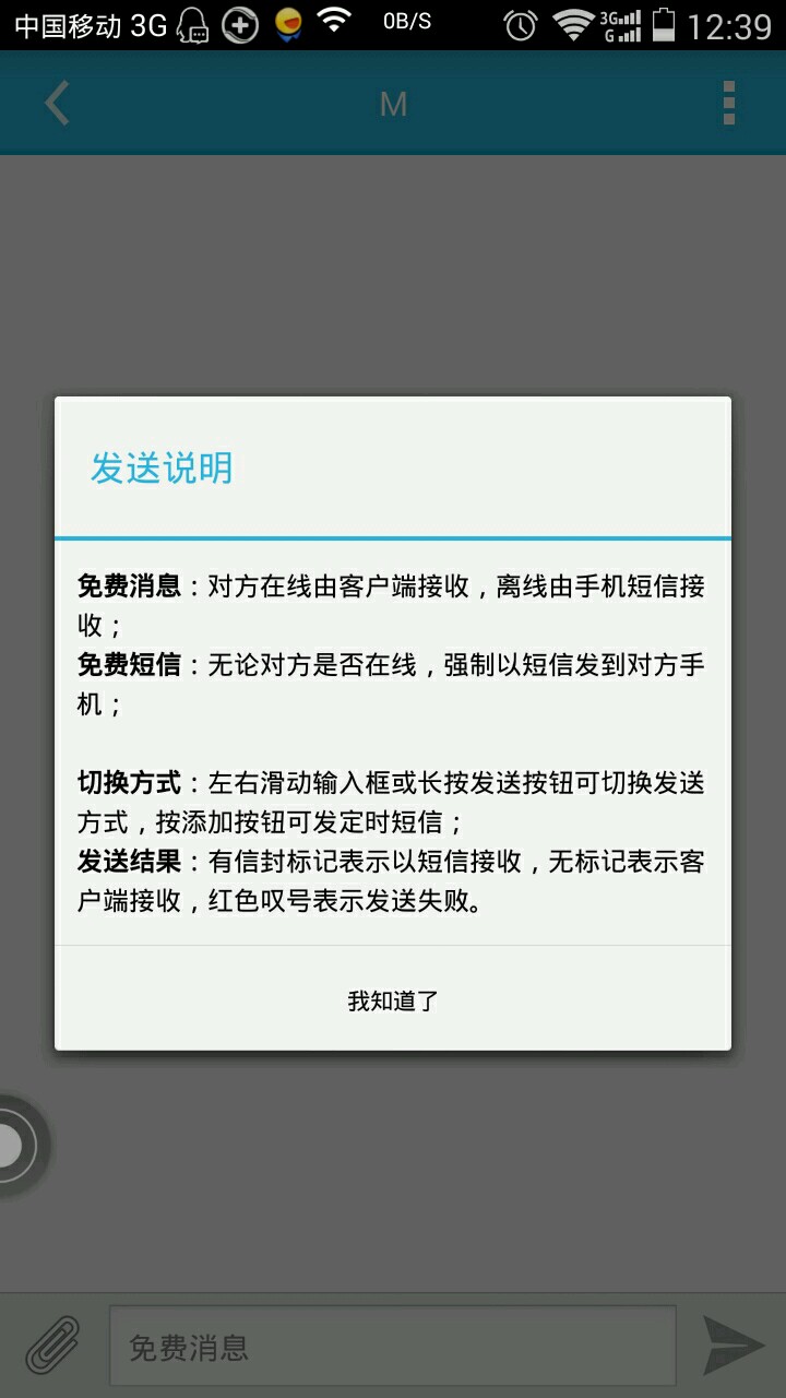 聊天界面,会记忆上次选择的发信方式。比如上次选择免费短信,关闭应用后再打开还是免费短信。而不像完整版5.4.2以后版本每次启动都默认成在线消息,shit!