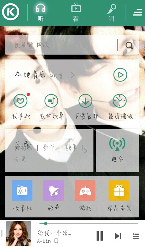 首先页面很小清新推荐的音乐会根据外部的变化而变化,并且歌很好听涉及面很广,虽然很小众,但是真的很好用