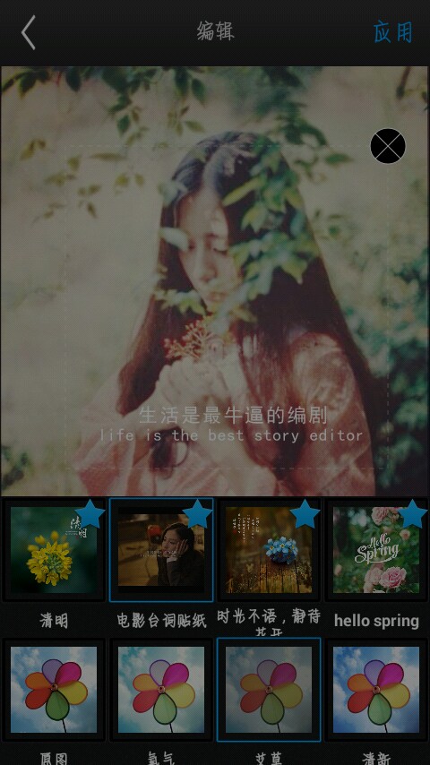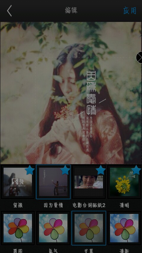 只能使用前置摄像头,拍照后还可以添加文字,可以旋转、虚化(没错,把自拍也虚掉)、加滤镜。不得不说瘦脸功能真不错!
