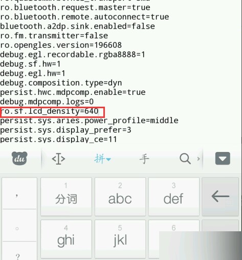 5 #找到【ro.sf.lcd_density=640】将640修改成480,然后保存
