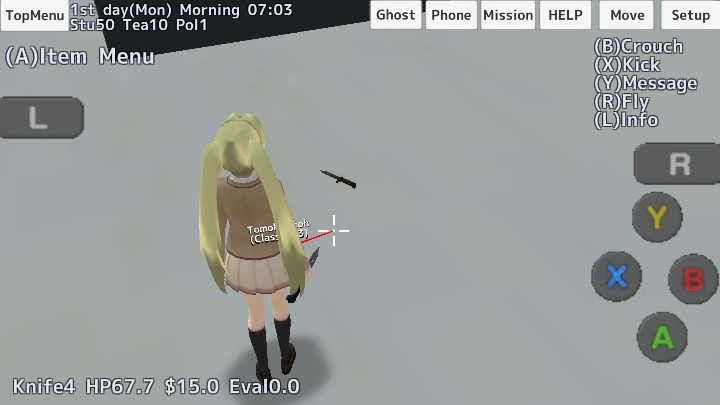 操作一:找到飞刀,找一个没有人的地方,按X飞出一把飞刀,不要飞太远,飞地上就行(图一)