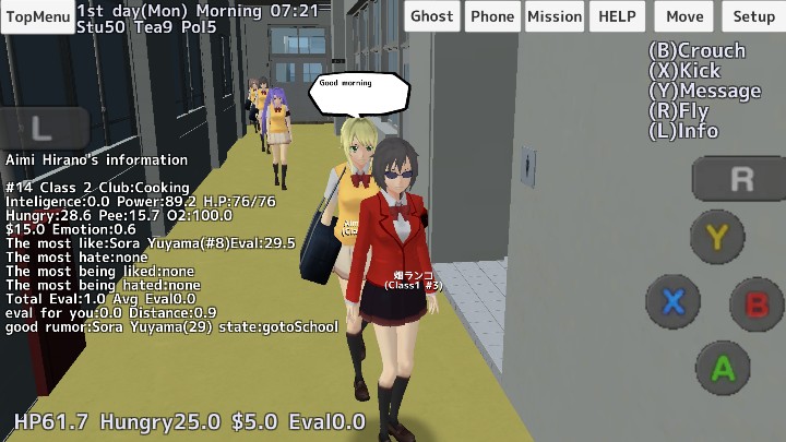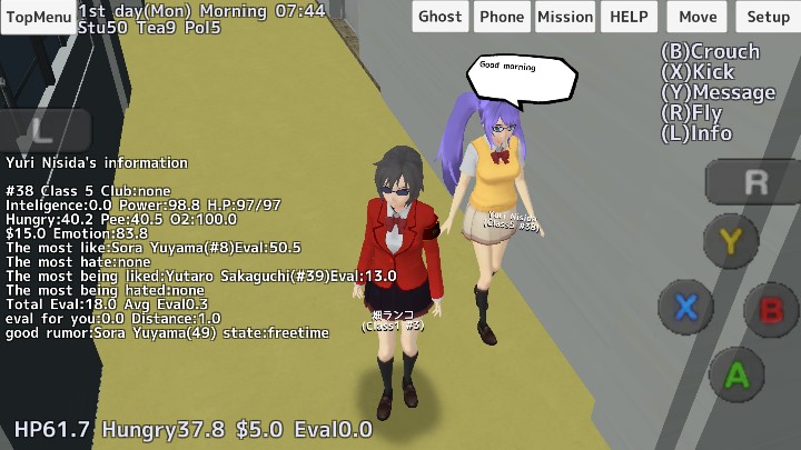 谣言系统可以在二楼电脑室的台式电脑开启,开启金额10美元(1000円),开启后随机选择一名学生A作为传播源(开始黄字显示为学生A开始传播学生B的谣言)。