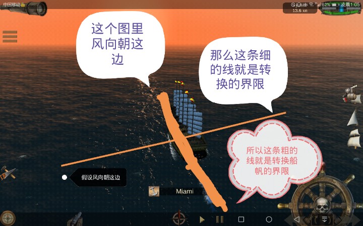 为啥这个游戏要设计两个船帆呢?其实船帆的使用也有讲究,比如在你转向左边时,你可以把前面的小帆关掉,以增加转向速度,但是在转过风向时,需要转换,就是说把小帆打开,大帆关掉,也就是反向操作。然后一个漂亮的360度旋转就完成了!