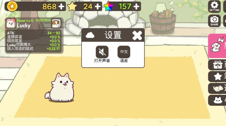 菜单第三个是遛狗,遛狗有时候会获得宝石,星星越多 可以点击的东西就越多