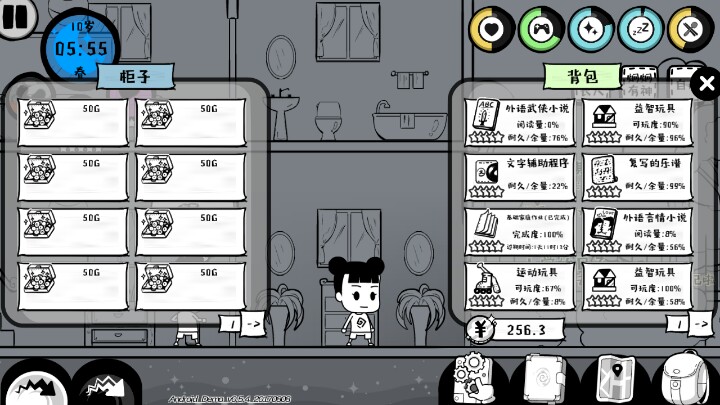 楼主这个10岁的小女生每餐都吃山珍海味,每天都有50块钱,然后楼主把钱拿去买物品上培训班升属性,然后又去创作东西拿去买,然后钱生钱,有了楼主现在的属性,用的几乎都是五星的道具,所以说,有钱真的是可以为所欲为