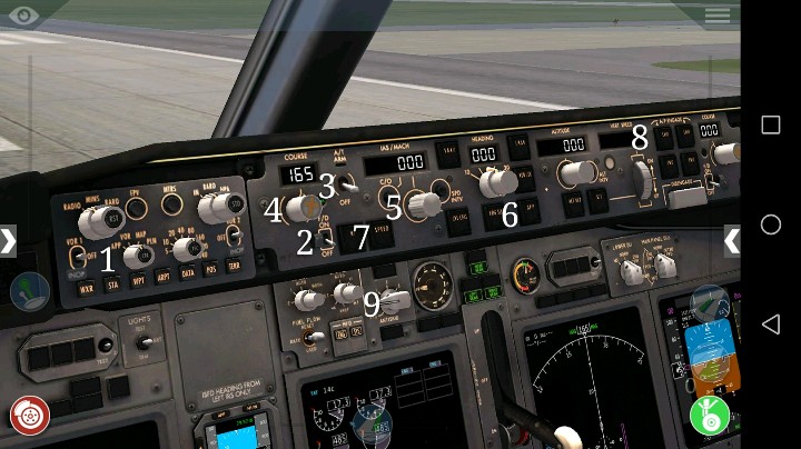选择波音737-800,进入游戏后,划开导航地图,选择到达机场,点击跑道后,会出现这样一个按钮(ILS App)(请看图一)。关闭导航地图,进入驾驶舱,将旋钮1调整到app,将旋钮4调整到165(请看图二)。再次回到导航地图,点击ILS App按钮,系统会自动返回到驾驶舱,离机场跑道距离已经不远了。首先把油门推回到底,让航速降下来。确保飞机在水平线上飞行(请看图三,这一步有些不好操作,手一定要稳住,只有飞行在水平线上,不能偏离航向165,才能打开图二的app按钮6。只要打开app按钮6,接下来就好操作了),打开图二的开关2,打开app按钮6,打开自动驾驶仪按钮8,打开自动油门开关3,打开速度按钮7,将旋钮5调整到140,飞机航速就会逐渐下降到140。自动制动器旋钮9调整到MAX(最高),打开图四的四个着陆灯开关。快要看到跑道时,将旋钮5调整到120,关闭自动油门开关3,打开起落架,将襟翼调整到15º,自动制动器开关在降落轮触地就会自动打开,飞机自动降落到机场跑道滑行,直到停下为止。
