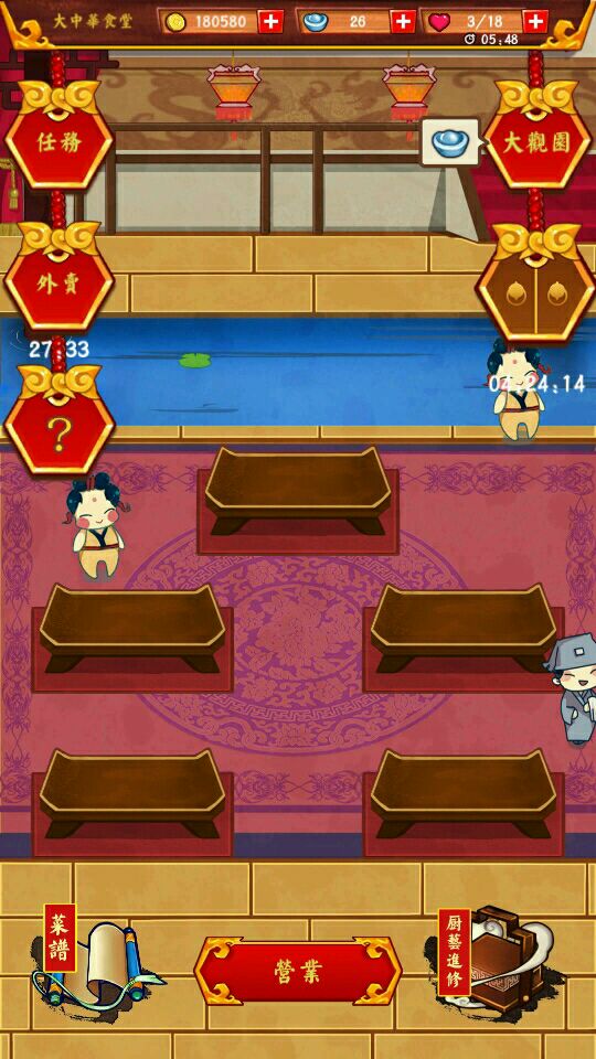 这个游戏很可爱,除了贵宾npc吃饭不给钱讲故事赊账、梅兰竹菊常年倒卖食谱和锅子、后期老鼠比水煮鱼值钱、大观园广告太少以及玩了一天才发现原来是繁体字以外……都挺好的嗯哼