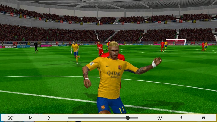 玩法简单易上手。右边三个键分别是高球键,长传键(力量大),短传键(力量小)。防守时长按短传键是逼抢,但效果不佳。屏幕中间区域是花式触发区域,双击屏幕可快速触发,具体触发方式:上滑-彩虹过人,下滑-马赛回旋,左滑右滑-踩单车。