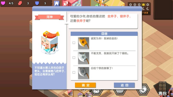 4.教程结束后,当然领奖励了,然后自己玩去吧,于是去了“小卖部”(一个关卡),打怪啊打怪,捡垃圾啊捡垃圾(卡片),《转角遇到爱》(一位老爷爷),当然选金斧头了(因为我觉得耐用啊),继续浪起来了,感觉好简单的游戏,怪都弱爆了,然后……呵呵呵。(闯关失败,小心使得万年船啊,心痛.avi。)