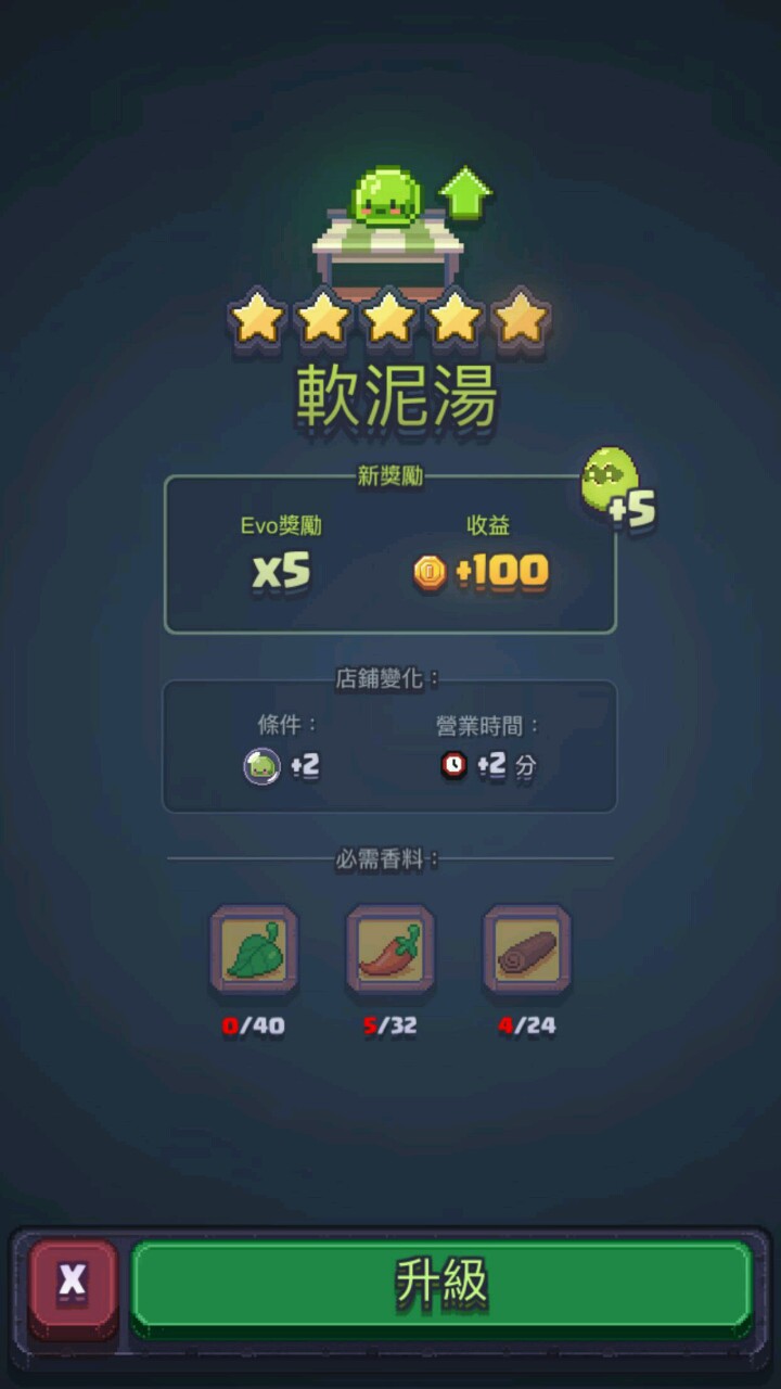 玩了一段时间发现升级困难。店铺升级的材料,角色升级的英雄币,解锁新英雄的玩偶,获得方式只有回收关卡和开宝箱的一点点几率。后期的英雄星级高,升级更可怕,而我光是养成前期的几个就很艰难了。五星的店铺升级材料也需要很久才能收集到。