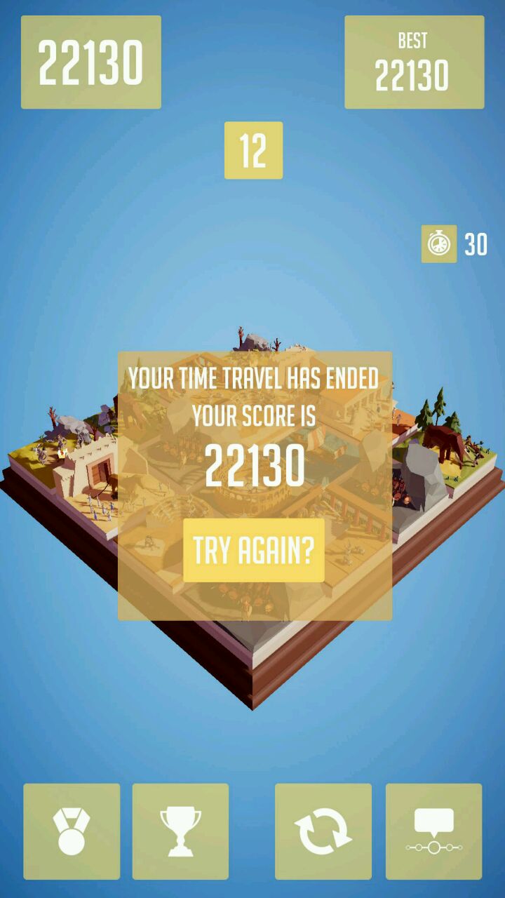 画面是比原始的2048精致多了,然而什么人类文明进化进程我完全没理解,只知道一开始在猎杀猛犸象?…后面的建筑物辨别不清,一度不知道哪个能合成哪个,加上倾斜的角度,还有偶尔手滑移错方向,堆得一片混乱。