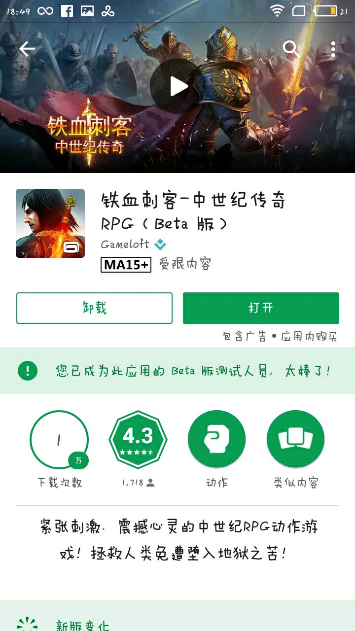 身为谷歌测试人员的我有幸玩了一下这款游戏,这款游戏玩法较多,在操作方面比较容易,上手也比较快,打击感也比较独特,左半屏负责格挡,右半屏负责点击攻击,不可以自由移动,而且没有什么多人模式,和地牢猎手的风格几乎一致,画质方面也是非常的棒,给人一种主机的感觉,打击感有点像黑魂3,只是在剧情方面比较像刺客信条的剧情,讲述的是圣殿骑士团中世纪故事,至于在多人模式方面我已经向gl官方做过反馈,希望到时候公测的时候不要太注重于坑钱就好,而且在原基础上增加一项多人模式,否则天天过剧情任务砍砍砍的没什么意思,在背景音乐上在添加一些中世纪的音乐,让游戏不要太单调,但是有很多的玩家并不是太喜欢这款游戏的玩法,但是对于我来说就是一句话,萝卜青菜各有所爱,所以不要喷,今天就说这么多了,谢谢大家收看!