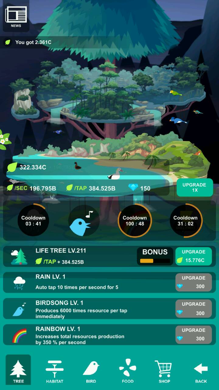 可以升级鸟儿和树,也可以给鸟拍照,鸟儿们有自己专门的图鉴。开始玩的时候技能还是挺重要的,可以帮你快速赚叶子【应该是吧→_→】