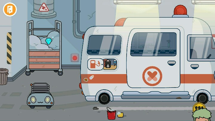 图二,负一楼打开救护车油桶有仓鼠护士,一直点旁边那个类似推车的粉红色物体上面的那个可以得到钻石