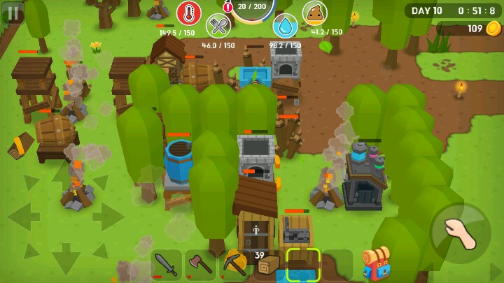 9 造好工厂,做点木墙和防御设施,靠近水池圈出个小范围,防御设施放在地上。