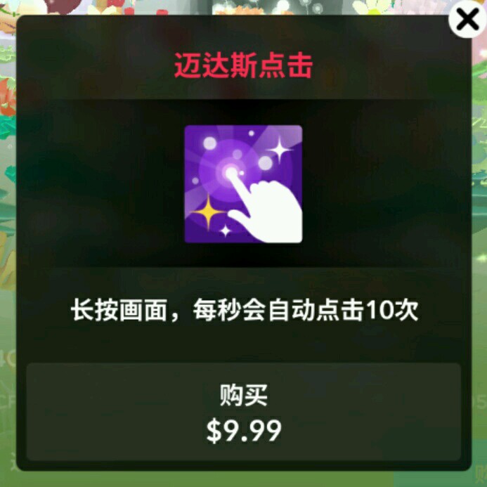 不过在此之前还更新过。1.3.6版本修复了一些问题;而1.3.7新增了一个花费9.99美元的永久性技能商品——“迈达斯点击”(下图4),长按画面就可以实现每秒自动点击10次~