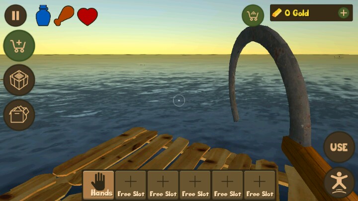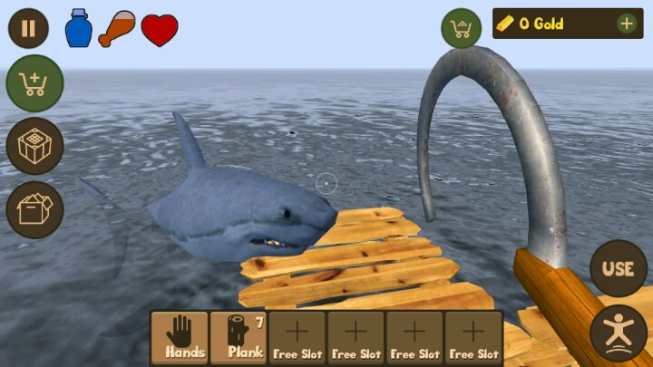 首先,刚看到这游戏简介里的截图时,你绝对会被吸引住,PC上才看得到的画质、35MB的大小,这绝对是精品中的精品,然后你就会情不自禁得下载这个游戏,但是…当你兴奋地点开这个游戏时…你却一脸得懵逼… 额。。好吧,进入正题,那么这次要评测得是一个生存向的沙盒游戏---『海上生存模拟』,但这游戏真正翻译过来应该是『木筏生存』,我也不知道汇汇是怎么翻译的。游戏刚开始只有四个木板和一个抓钩,时不时还有鲨鱼来骚扰你,所以前期生存挺困难的。这游戏能造的东西其实也没多少,不过可玩性跟PC上的也差不了多少了,在游戏中玩家可以造出过滤器、烤架这两种求生(补充能量)用的道具,当你获得土豆时也可以选择种植而不是吃,当材料充足时也可以扩建自己的基地。玩这游戏如果真的想生存的话,那就一定得认真玩:前期看见 木头、草、铁片、箱子就一定得去捡(用抓钩),用抓钩的时候一定要看准时机再抛出去(按住可以调节力度),等你的材料够的时候就赶紧造出 矛,因为鲨鱼会来咬木板,而且还会把木板咬烂,然后就是造 过滤器、钓鱼竿(不用鱼饵)还有就是那个煮食物的,后期当然就是扩建基地啦,总之只要熬过前期,想怎样玩就怎样玩。