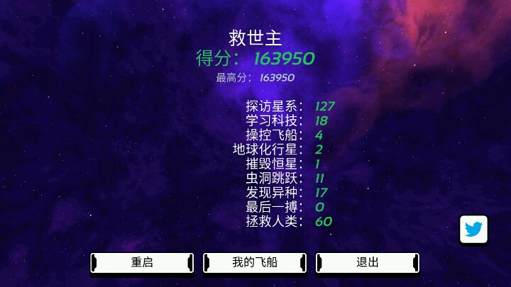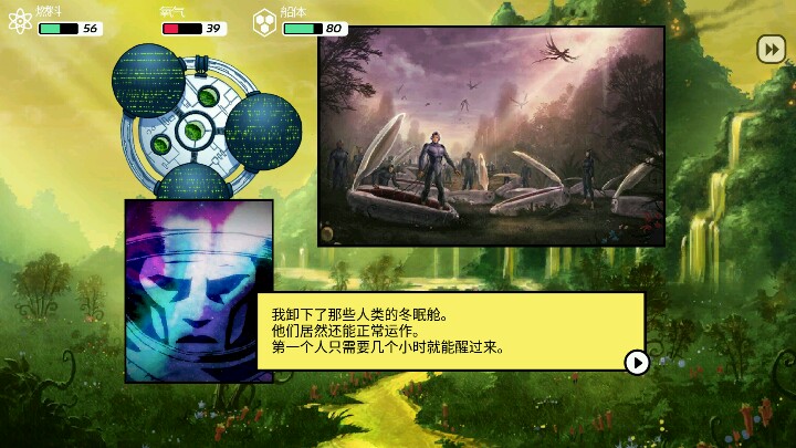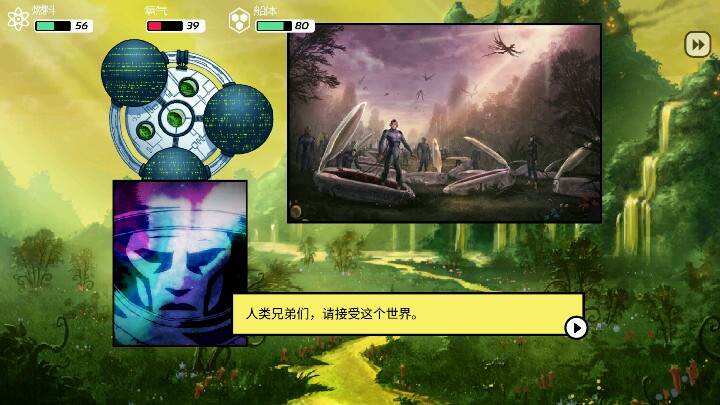 首先要把辣鸡船换掉,在找科技,找欧米茄,没好船前什么升级科技都不要装,(我用的是装有人类尸体的船)一共有黄绿蓝三个结局,我已经全部探过啦,图为黄星,拯救人类,可惜只能上传四张图。