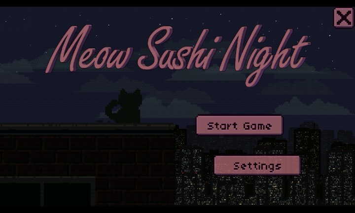 喵咪跑酷休闲游戏,依旧是可爱的像素画风,点击操控喵咪跳跃吃寿司,地点是在高楼上hh,游戏界面清新可爱,bgm用的是静吧唱片音乐,好听!游戏打开的时候会说你没有安装谷歌市场,点击返回就可以了,但是不可以点其他的,例如排行榜什么的