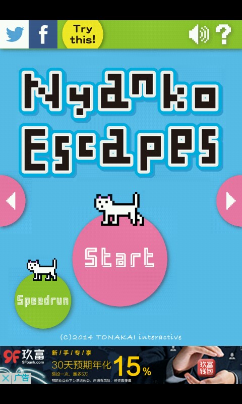 游戏为英文,有广告,关闭wifi玩耍应该就不会有了。点击即可开始游戏,中途遇到猫猫如果你死了她会接力,不过还是由玩家操控,如果没有失去生命则会跟着你捣乱。