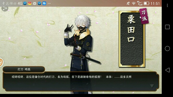 今天早上赌到一把4个小时的,因为开服送小狐丸,就以为系统会再给一个,没想到中午一开居然是爷爷【我要死了!】然后跑到学校厕所里又赌了一发,鸣狐!【果然厕所是欧洲之地】像我这种脸黑在某游戏连ssr都抽不到的人在开服第二天就出了爷爷,只能说,官方我爱你啊!!!