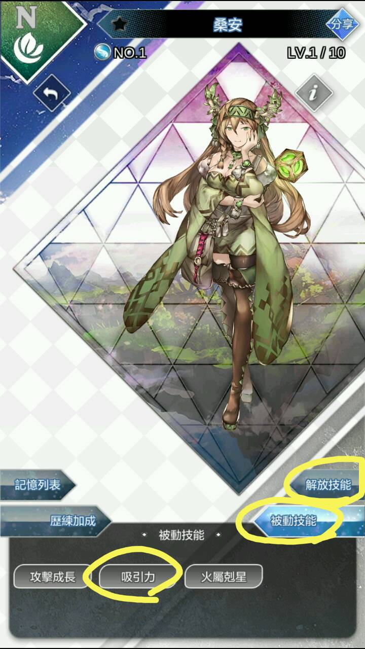 如图1,进入编队界面长按头像得图2。图2可确定解放技能(唯一的攻击技能)和被动技能,衡量后完成编队准备育成副本
