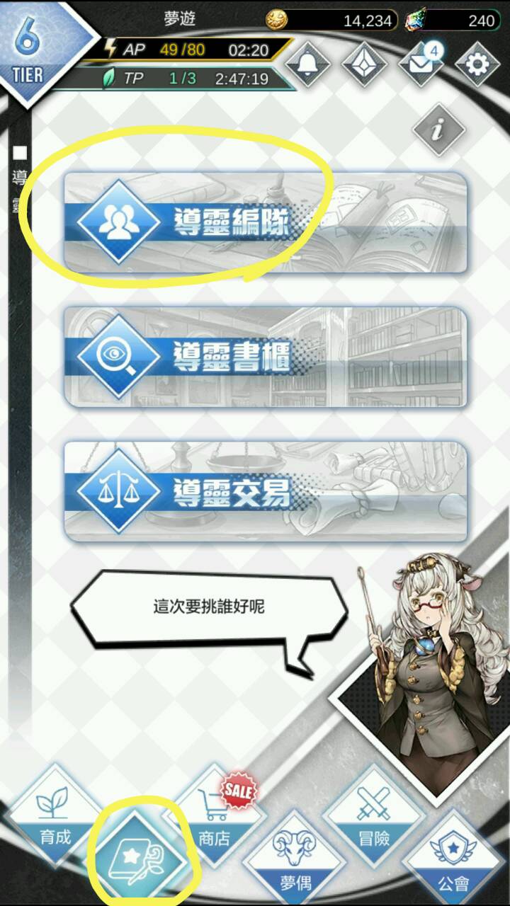 导灵编队→育成副本获得新梦偶→梦偶编队→冒险探索(战斗)→领取任务奖励→抽导灵
