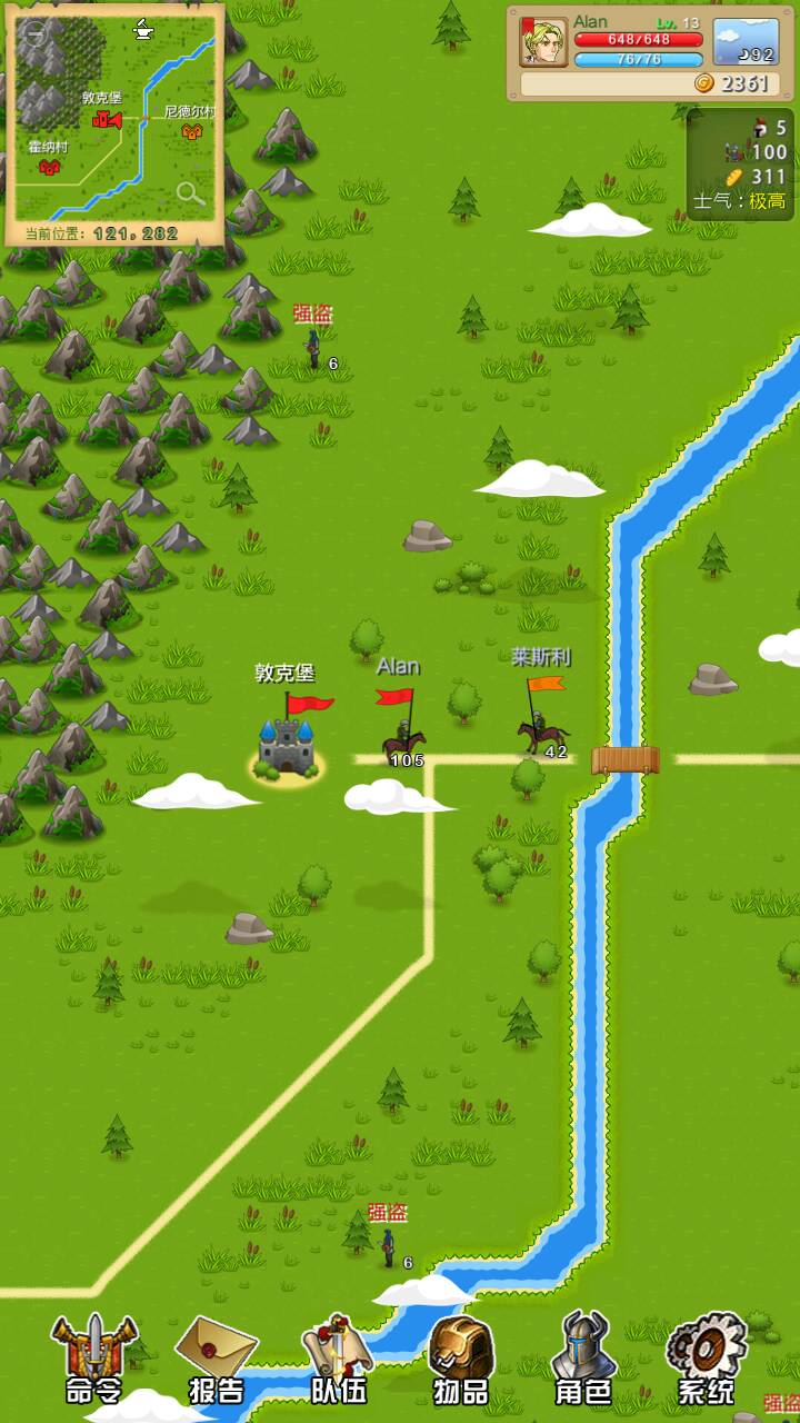 现在应该有两个国家向你宣战,放风筝俘虏他们英雄,去掠夺小村庄然后取消就会有一对人过来干死他,没俘虏重复,俘虏就关监狱,不然有可能会跑,重复这个操作,不去抢主城旁边的村庄一般这个国家的最强战力是不会来打你,等把英雄俘虏差不多了去占城慢慢的钱就多了。记住一定要把士气提升到最高,事半功倍哦!