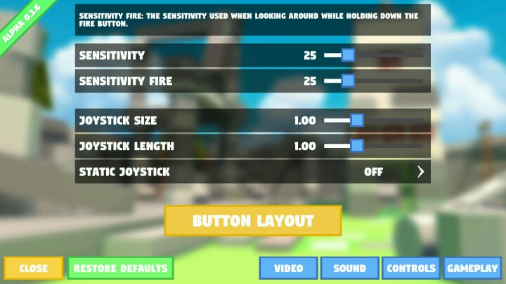好在游戏里可以设置按键键位,游戏主界面选择下方settings菜单,再选择右下方controls选项,此时会出现黄色的button layout选项,点进去就可以设置键位了。拖动按钮更改位置,滑块可以调整按钮大小。个人习惯将射击键调整到左边去,这样射击时可以准确瞄准到敌人。缺点就是射击时不方便移动躲子弹,不过进攻就是最好的防守,瞄得准才是硬道理。