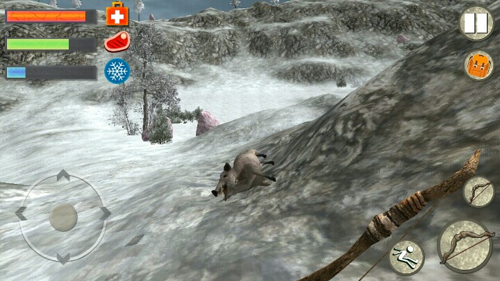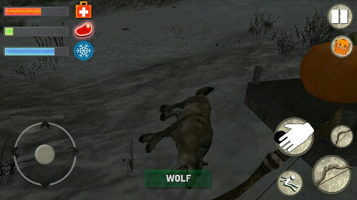 首先,刚开始的时候要先杀两只兔子(只有兔子打得死,而且兔子还蹦蹦跳跳的不好杀)。然后砍树一个进度条,敲石头一个进度条,这样就能获得3块木材&3块石材,点开背包制造篝火(一定是篝火,火把并没什么卵用)。再制造一个斧头,斧头可以让砍树的速度更快。天黑了,一定要尽快跑到山上。这样动物就不会去攻击你。斧头,弓箭,锤子都是需要制造的。弓箭可以远程射杀动物获取肉类。里面有种子,还可以种南瓜。南瓜的生长速度是非常快的,而且收获的南瓜三个就能补满体力值。左上角三个进度条,最下面那个是寒冷值,在它快要满的时候,一定要制造篝火,那样可以用来驱散寒冷,而且篝火可以用来烤肉,烤肉可以增加将近一个进度条的体力值,而生肉只能增加1/3。