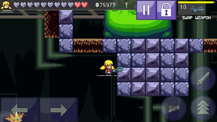 第n周目打到第二关(以经有三连跳)偶然发现史来姆爸爸分身后出现在头顶方框内(图一)换激光射死之后(激光可穿墙)就通关啦!!