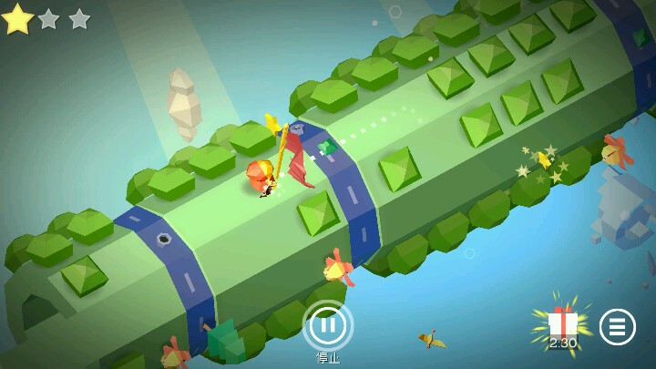 在关卡界面,可以看到底端有一个按键,只要按了按键,小女孩在迷宫里会一直走,除非你再按一次让她停下来。迷宫不是平坦的,有很多障碍,而小女孩过不去的话就会向右转。玩家就是要利用这一特点让小女孩吃到“星星”,走出迷宫。可以看到界面上有些紫色的道路,那是可以旋转的。后面还加入了食人花、成长树、弹跳键等要素,让游戏难度有所提升。