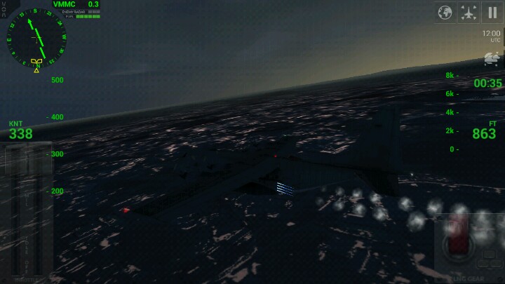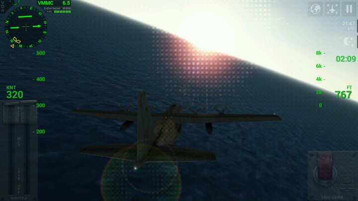 模拟起降续作,虽然只有一百多MB,但内容上感觉绝不止一百多MB,画质和效果得比一部好了许多,在航母上降落时,机身会猛的一晃,而且还可以看到飞机后面的挂钩拉住了挂索。