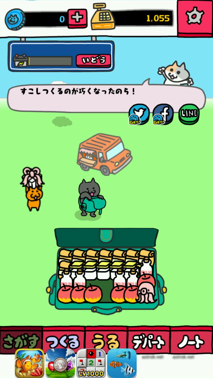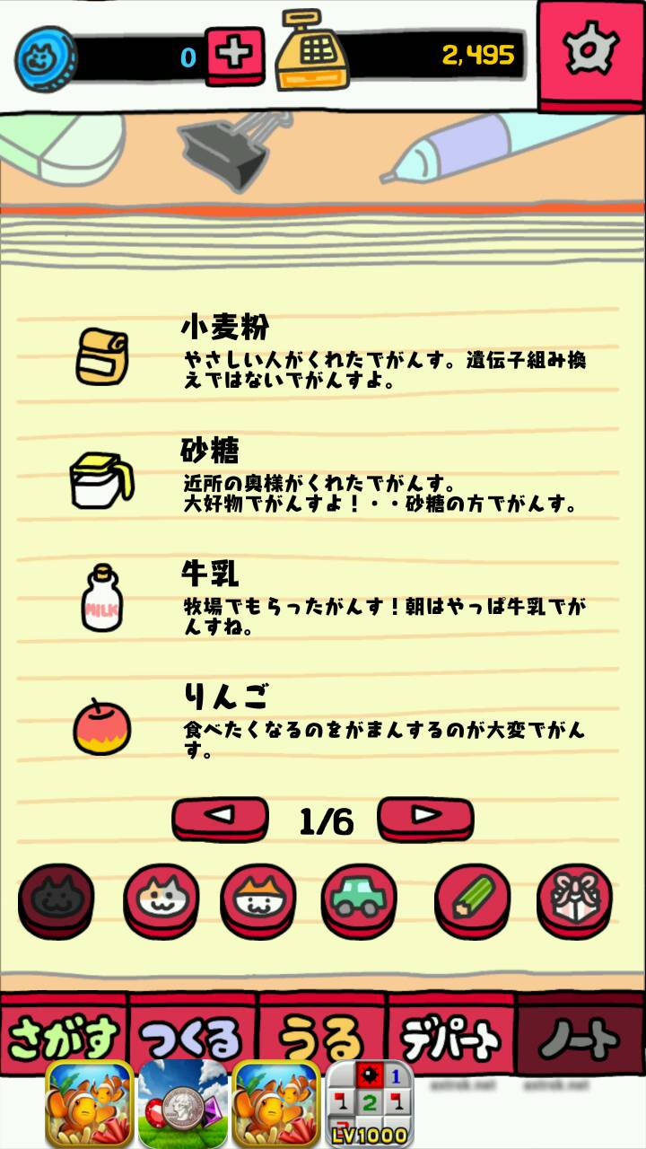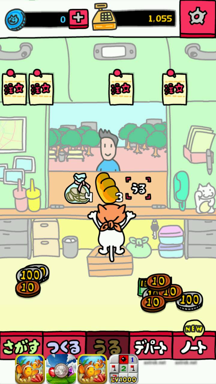 玩法应该属于半放置型,小黑猫负责收集食材 小花猫负责烹饪 小白猫负责售卖食物 售卖食物上面一栏会有食品订单,快速售卖,有时候还会收到订餐电话,这样的报酬要比平常多,卖出的钱用来升级设备,找到更多食材,可以烹饪更多食物,最后一个选项那里有图鉴,可以一览食材食物和设备,可以看不懂图鉴有些遗憾|・ω・`)但是除此之外没有语言障碍